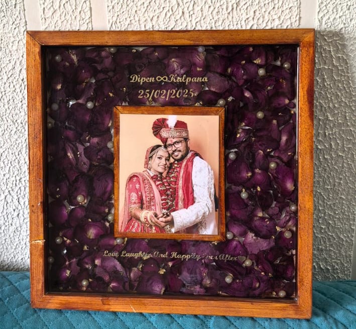 The Blossom of Love Resin Memory Frame captures the essence of romance and togetherness through preserved rose petals — a symbol of eternal love.