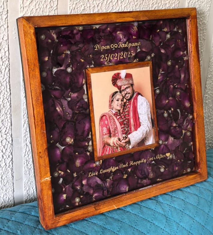 Crafted with premium-quality resin, fine wooden framing, and custom design options, this piece embodies both luxury and emotion — making your love story truly unforgettable.