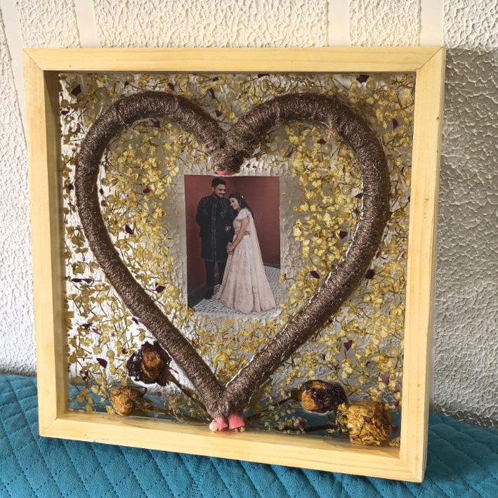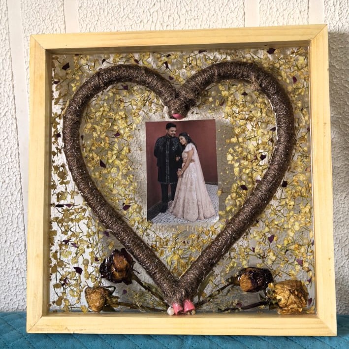 The Heart of Forever Resin Varmala Memory Frame is a symbol of eternal love and devotion. Handcrafted with care, this unique design beautifully preserves your wedding varmala in a heart shape — representing the bond of two souls united in love.